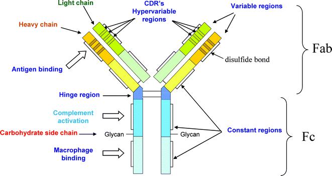 F(ab)2片段:該種抗體是由兩個靠二硫鍵連接的用于結合抗原的Fab片段組成,這些抗體用在特定的情況中,如需要避免抗體與具有Fc受體的細胞結合的情況。