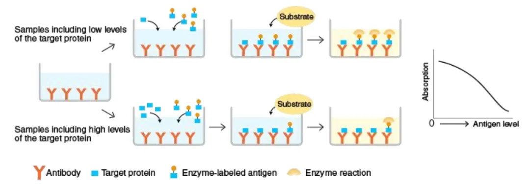 1、樣本中分析物水平較低可以使用哪些方法改進(jìn)檢測?通過增加洗滌次數(shù)和兩次洗滌之間的浸泡時間降低背景。控制測定精確度。例如,在移液時要更加小心和一致,使用干凈的紙巾拍板,以避免污染。增加孵育時間。但這通常也會增加背景,因此檢測靈敏度不一定會增加。如果可以的話,建議濃縮樣本。使用5-PL曲線擬合方法,更準(zhǔn)確地計算標(biāo)準(zhǔn)曲線下端的樣本濃度。在大多數(shù)情況下,樣本可能只含有非常低或無法檢測到的分析物水平。這時無論如何操作和測定,仍然無法檢測到準(zhǔn)確濃度。2、包板應(yīng)如何存放?如果包被完抗體的板不能立即使用,應(yīng)將其密封并在4°C儲存過夜。3、為什么使用同一克隆號的捕獲抗體和檢測抗體建立ELISA實驗沒有成功?如果使用相同的克隆抗體進(jìn)行檢測和捕獲,則抗原表位可能已經(jīng)被其中一種抗體占據(jù)并抑制另一抗體結(jié)合。建議捕獲和檢測抗體選擇不同的克隆號。4、應(yīng)該使用哪種包被緩沖液?一般來說,建議使用PBS(pH 7.4)或碳酸鹽緩沖液(pH 9.5)。確切的包被緩沖液可能取決于要檢測的細(xì)胞因子。5、為什么細(xì)胞因子流式染色與ELISA測定之間沒有良好的相關(guān)性?流式細(xì)胞術(shù)檢測的胞內(nèi)細(xì)胞因子代表檢測時的陽性細(xì)胞比例,ELISA代表細(xì)胞因子隨時間的積累量。可能少量的陽性細(xì)胞在一段時間之后會分泌大量的細(xì)胞因子于培養(yǎng)上清中,導(dǎo)致ELISA的結(jié)果與胞內(nèi)因子染色的結(jié)果不一致6、可以使用細(xì)胞培養(yǎng)板進(jìn)行ELISA實驗嗎?不可以。細(xì)胞培養(yǎng)板設(shè)計用于達(dá)到細(xì)胞培養(yǎng)目的,通常不具有高蛋白結(jié)合能力。對于ELISA,建議使用具有高蛋白結(jié)合能力的板,例如 Nunc Maxisorp?酶標(biāo)板。7、血清等樣本可以重復(fù)使用嗎?不建議重復(fù)使用樣本。為了獲得準(zhǔn)確的結(jié)果,樣本應(yīng)分裝儲存,僅供一次性使用。如果重復(fù)使用樣本,需要進(jìn)行額外的驗證實驗,以確保實驗準(zhǔn)確性。8、在什么步驟中,可以暫停ELISA實驗?可以冷凍板子以備后用嗎?最好遵循說明書操作,沒有任何可以暫停實驗的步驟。但是,如果一定需要暫停實驗,建議在封閉步驟(包被捕獲抗體后)。可以在孔中加入200 μL封閉緩沖液,并將板在4°C過夜(信號損失最小或沒有)或在-20°C冷凍幾天(可能會對信號產(chǎn)生一些影響)。不建議在第一步進(jìn)行(在4°C用捕獲抗體包被超過16-20小時),因為可能會導(dǎo)致高背景。9、包被捕獲抗體可以超過過夜的時間嗎?通常來說,建議在4°C包被16-20小時。較長的孵育時間可能會增加與板結(jié)合的捕獲抗體量,會增加背景。10、培養(yǎng)基中的酚紅會干擾ELISA測定嗎?不會,培養(yǎng)基中酚紅的吸光度可以在計算時,通過扣除空白孔中本底的吸光度而消去,因此不會干擾ELISA測定的讀數(shù)。11、對于一些ELISA試劑盒,為什么血清樣本需要稀釋?血清樣本稀釋可以盡量減少樣本和標(biāo)準(zhǔn)品之間的基質(zhì)差異,以獲得更加準(zhǔn)確的結(jié)果。12、如何提高ELISA檢測獲得更好的信號和靈敏度?增加孵育時間,但這也可能會增加檢測的背景,同時不改變靈敏度。在孵育步驟中搖動板子。確保標(biāo)準(zhǔn)品在使用前完全溶解。在兩次洗滌之間增加浸泡時間,以進(jìn)一步降低背景。如果可以的話,在450-570 nm處讀板以減去本底。通過控制移液誤差或使用更大體積的洗滌緩沖液洗滌來改善CV值。使用5-PL或4-PL曲線擬合方法,而不是線性曲線擬合。
