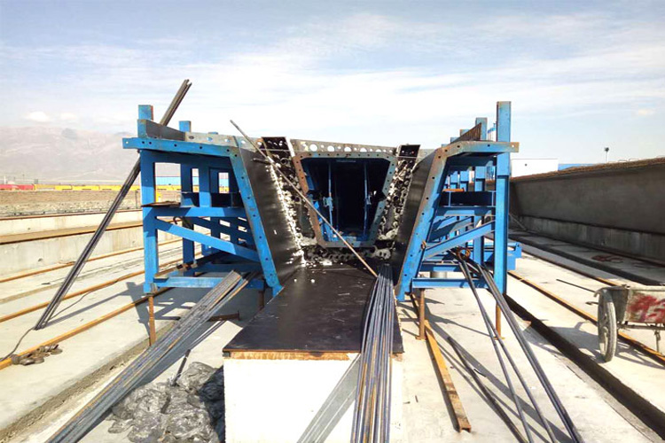 3、安裝底模時應在底模上準確標出梁體的中軸線,并調整底模的反拱度。? ??