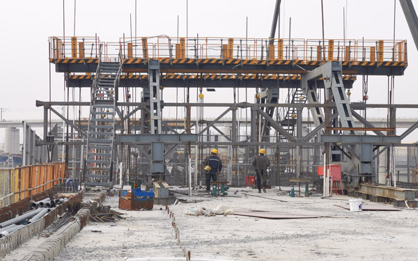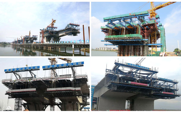 (2)在墩上進(jìn)行零號(hào)塊施工并以斜拉托架做施工平臺(tái)時(shí),在平臺(tái)邊緣處,應(yīng)設(shè)安全防護(hù)設(shè)施。